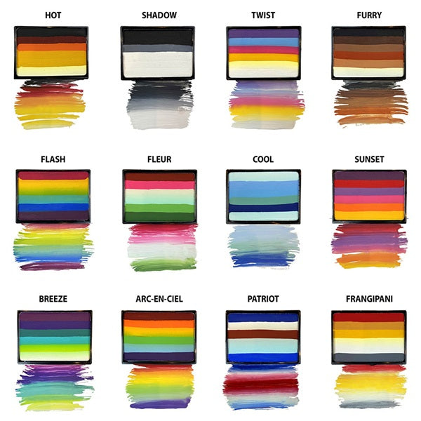 Each Prisma split cake palette features six complementary shades of Paradise perfect for easy blending, contouring, highlighting, and shadowing. Create quick designs with ease for face paint and other creative makeups.
